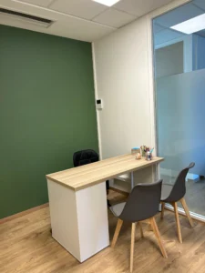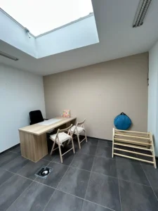 L’enfant est accueilli dans l’espace de consultation. Je vais observer le comportement, poser des questions pour comprendre les besoins et adapter la séance en fonction de ce qu’il aimerait faire.